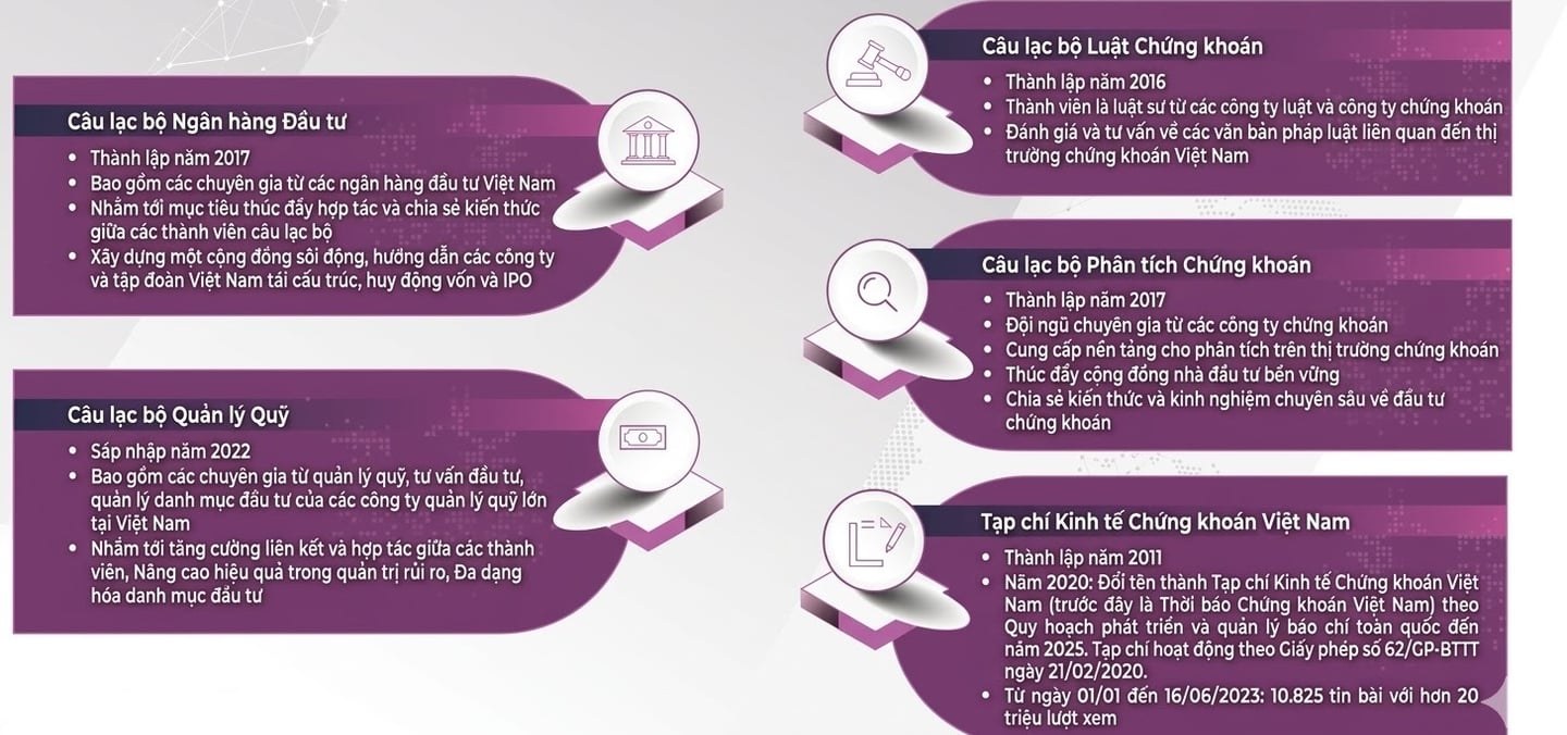 Vai trò: Đóng vai trò nòng cốt trong việc kết nối chuyên gia đến từ các công ty hội viên nhằm hỗ trợ VASB trong việc xây dựng chính sách, đào tạo nguồn nhân lực chất lượng cao và phổ biến kiến thức tài chính