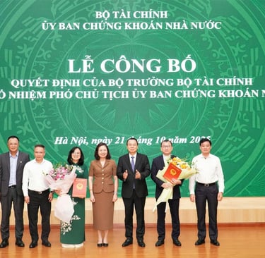 Chiều 21/10/2025, tại trụ sở Ủy ban Chứng khoán Nhà nước (UBCKNN), Thứ trưởng Bộ Tài chính Nguyễn Đức Chi đã chủ trì Hội nghị công bố Quyết định bổ nhiệm hai Phó Chủ tịch UBCKNN.